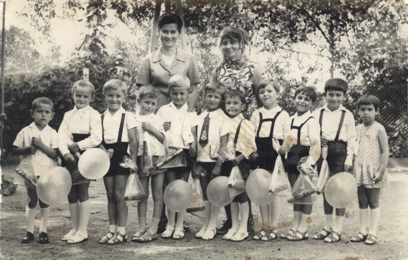Nyilvános 1711 | 4520 | 1970-es évek. A kép a régi óvoda udvarában készült. Baloldali óvónő: Könyves Rózsa, jobboldali keresztneve Gabriella. Gyerekek balról jobbra: Süvegi Lajos, makai Mária, Baranyai János, Baranyai László, Zsovár László, Szemérnyi László, nem ismert, Molnár Hajnalka, Horváth László, Baranyai Elemér, ismeretlen. | |
