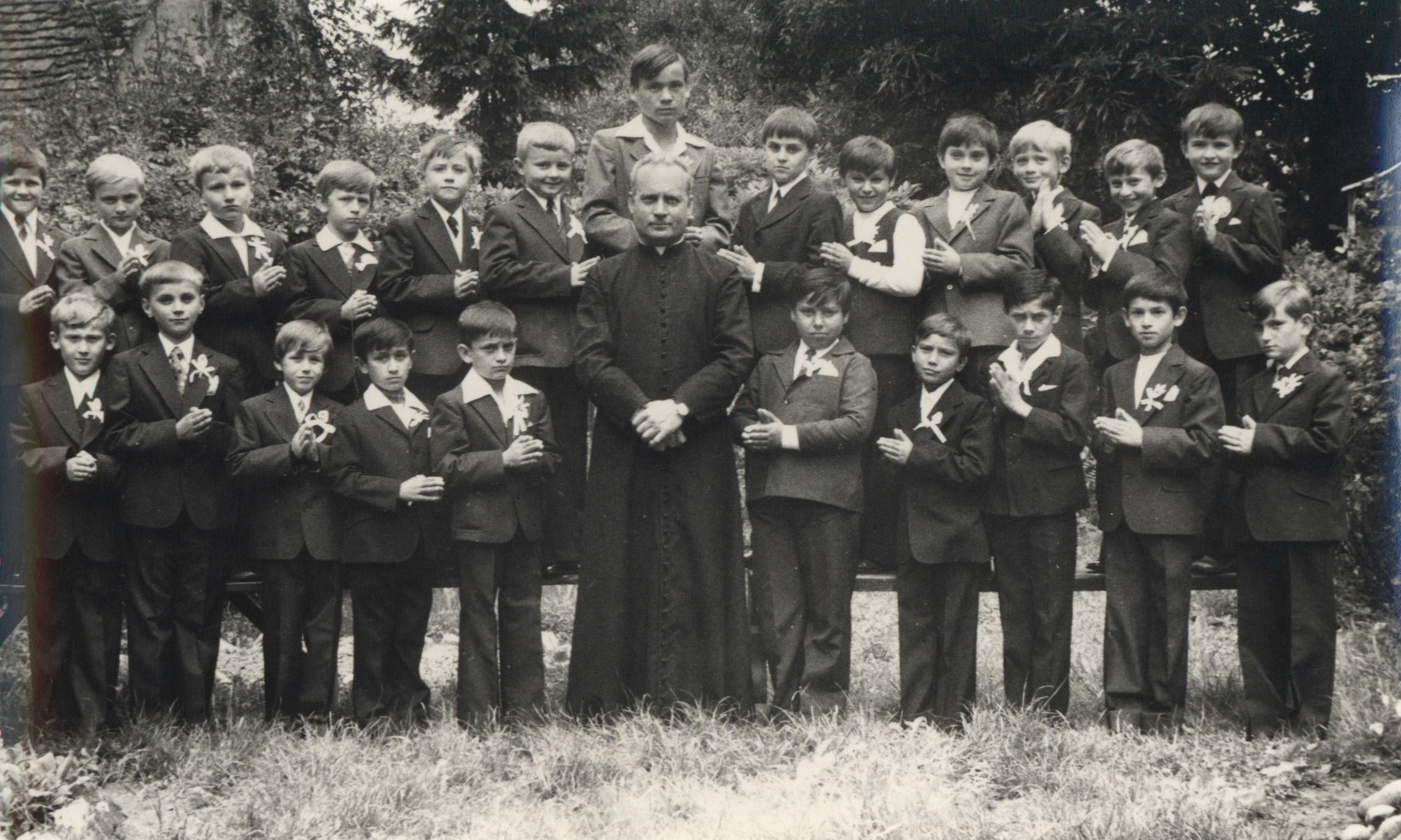 Nyilvános 1685 | 4181 | A régi iskola 1976-ban. A középen látható pap családi neve: Tihanyi. Személyek: | Hátsó sor balról jobbra: 1. ismeretlen 2. Pfeifer István 3-5. ismeretlen 6. Zsovár László 7. Dudli József 8. ismeretlen 9. Horváth László 10. Marton László 11. Csöndör László 12-13. ismeretlen Első sor balról jobbra: 1. Gulyás Ervin 2-3. ismeretlen 4. Baranyai László 5. Tömöri Ferenc 6. pap 7. Bognár József 8. ismeretlen 9. Tolnai Jenő 10-11. ismeretlen. |